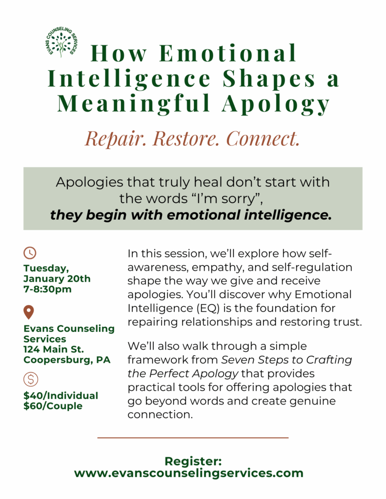 In this session, we’ll explore how self-awareness, empathy, and self-regulation shape the way we give and receive apologies. You’ll discover why Emotional Intelligence (EQ) is the foundation for repairing relationships and restoring trust.